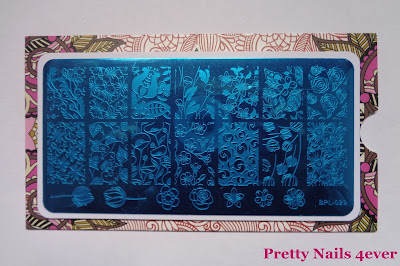 A placa em questão é a BPL-029 e possui essencialmente padrões florais. É composta por 21 desenhos no total, em que 14 deles são padrões de unha inteira e 7 são flores individuais.