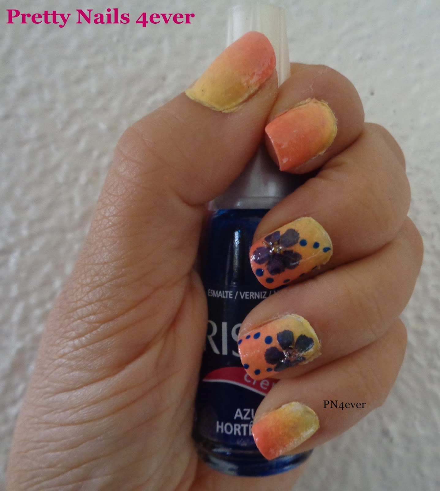 Nas unhas "irmãs gémeas" fiz uma francesinha com o preto sépia, deixei secar, e depois apliquei os "quadradinhos" um a um começando pelo azul e depois pelo cor de rosa e finalmente o roxo, fazendo um efeito diagonal.